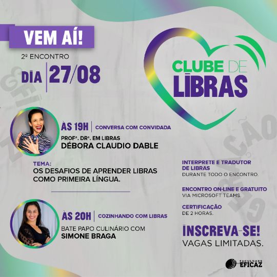 Assim como o ato de falar, comunicar-se no cotidiano, aprender uma receita nova, “bater papo” entre amigos, atualizar-se em assuntos sobre o mercado de trabalho em vários segmentos faz parte do seu cotidiano, aprender e se relacionar com a Libras neste mesmo contexto é o nosso propósito como CLUBE.